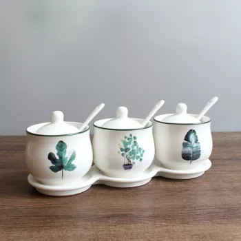 Ceramic Spice Jar Set with Tray and Spoons – Japanese Style Kitchen Storage