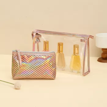 Laser Fish Scale Waterproof PVC Makeup Bag Set - Transparent Two-Piece