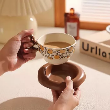 Vintage Retro Coffee Mug & Saucer Set for Afternoon Tea 250 ml